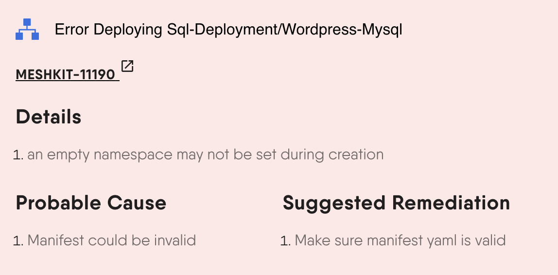 As a system, Meshery itemizes different errors that occur and assigns a unique error code to each along with details on how to remediate the issue at hand.